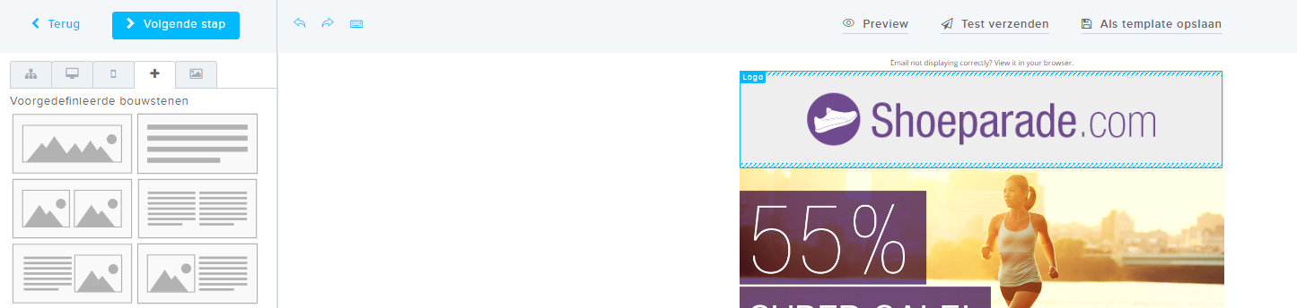 U heeft tijdens het maken van de nieuwsbrief in stap 4, de editor, de mogelijkheid om een preview te bekijken in zowel desktop-, tablet- als smartphone vorm.